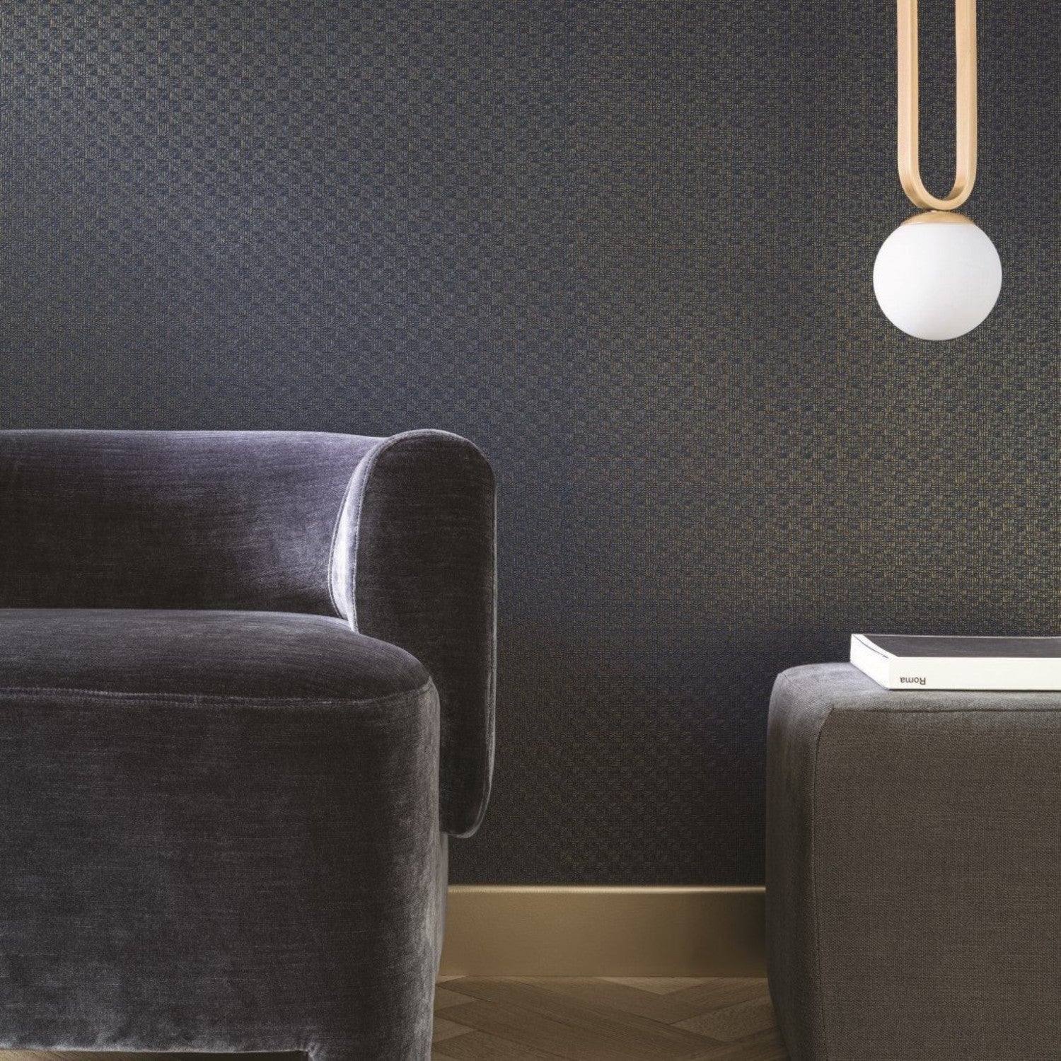 Wagara design van Casamance. Dit vinylbehang heeft de uitstraling van geweven behang. Door een glanzende kleur op de bovenlaag aan te brengen kijkt het aan als 3D behang.